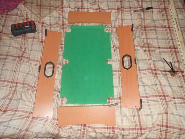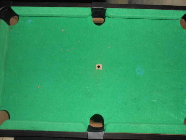 Si tu mesa mini cuenta con un sistema de carril Desenroscar de la tabla desenroscar los lados de la mesa. Hay cuatro lados. Después tienes la tabla totalmente desmontada y los lados pusieron al lado se concentrará en la mesa (gran piscina plano superficies) sí mismo. En la parte posterior de la mesa utilice un marcador permanente para marcar el centro. ¿Cómo encontrar el centro? Fácil. Si eres buena con los gobernantes. primero mida el ancho y dividirlo por 2 y marcar la mitad de la anchura. Luego mida el largo y dividirlo por 2 así y tendrás la mitad de la longitud. Por ejemplo la longitud de mi tabla fue 19 pulgadas eso divded por 2 me dejaron con 9.5. Me mide 9,5 pulgadas, que es la mitad de la longitud. Simplemente toma una regla con un nivel y dibujar una línea frente a cada medio y wil se abandonó con una intersección. Donde se cruzan las dos líneas es ahora su nuevo medio! El centro exacto de la mesa! Sé que probablemente confunde el heck fuera de usted con todo lo que por lo que he incluido picutres!