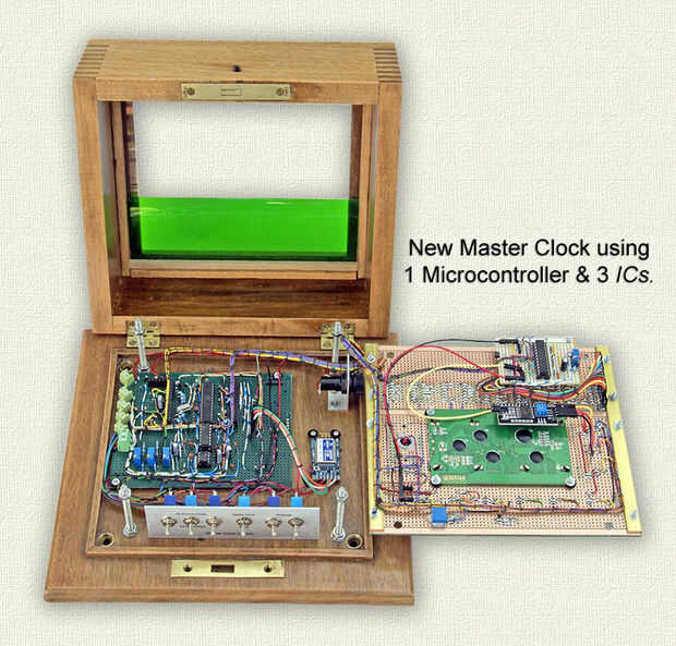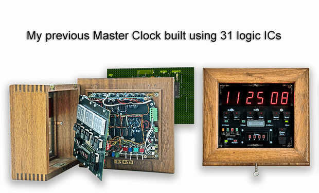 Después de muchos años de la construcción de relojes con lógica fichas que decidí usar microcontrolador debido a la viruta reducida cuentan y por lo tanto facilitan de construcción. Mi anterior reloj maestro 31 lógica ICs y 4 tableros principales y tenía mucho menos funciones ver foto.