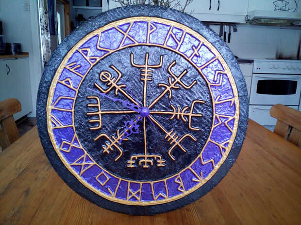 Hacemos un montón de obras de arte de cinta de aluminio y queríamos hacer una protección Galdr, (Galdr (galdrar plural) es una palabra del nórdico antiguo para "hechizo, conjuro"). Hemos decidido hacer un reloj de pared y aquí está cómo lo hicimos.