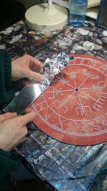 En este paso necesitarás cinta de aluminio y un dibujo tocón, es una muy buena herramienta para aplanar la cinta de aluminio con.