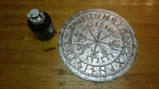Añadir una capa de pintura negra a ambos lados con una esponja.