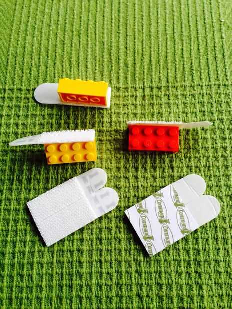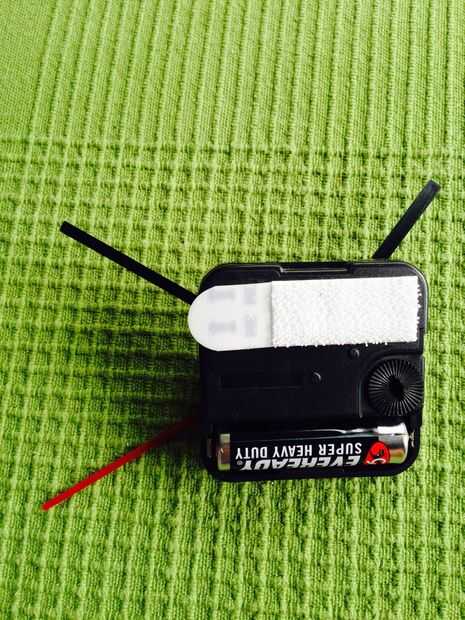 Utilizamos 3M mando pequeñas cuadro colgante tiras [disponible en tiendas de suministros de oficina más] para no dañar la pintura. Pero para hacerlo más asequible, podría cortar 24 trozos de cinta de velcro de 1,25 pulgadas (de ladrillo) y 2 piezas sobre la anchura de la pieza de reloj