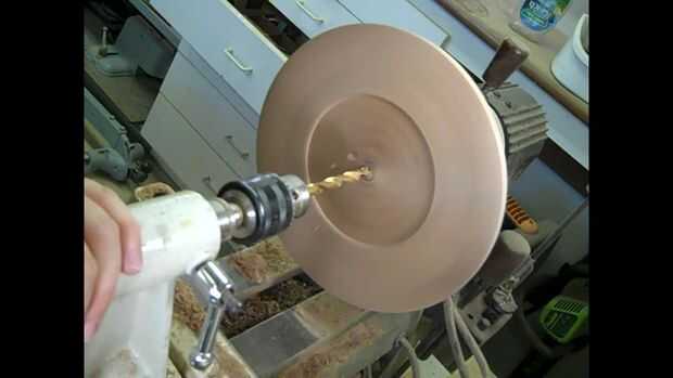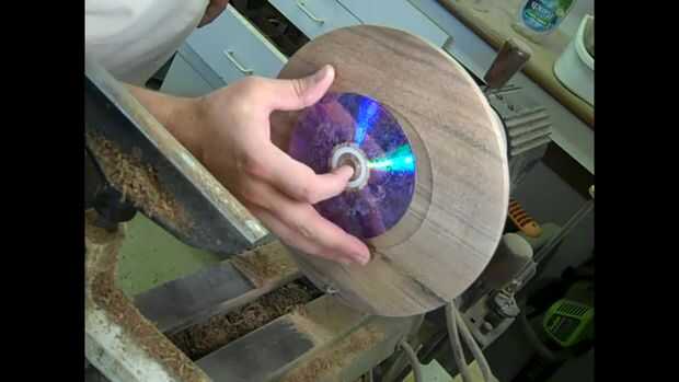 Un CD es unos 4 el 5/8" ancho por lo que si empieza con un círculo de 4 1/2 y ampliar a medida que avanza puede obtener un ajuste apretado. Parar el torno y revise con frecuencia.