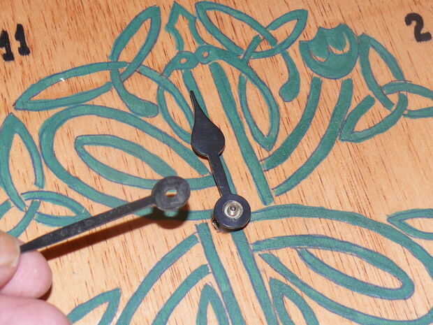 Con el acabado del clavo o pegue la cara del reloj a la estructura del reloj y entonces el mecanismo del reloj a éste.