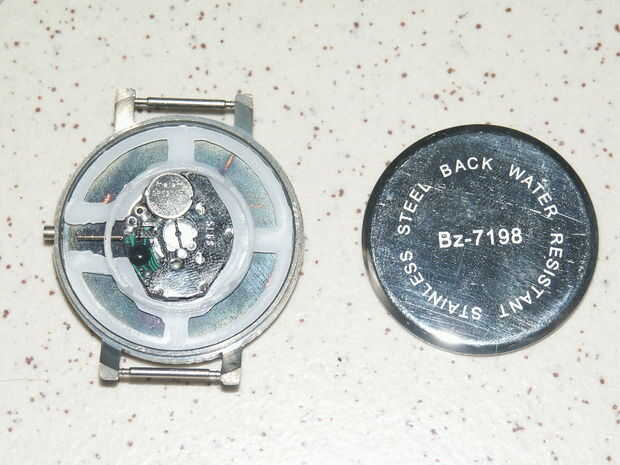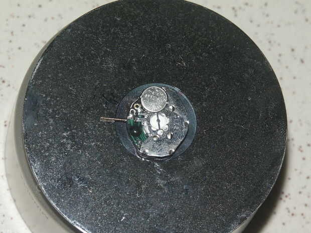 Empezar por desmontar el reloj. La rotura de la perilla pequeña en el lado del reloj para ajustar el tiempo. Quitar la parte de atrás y sacar la pieza de plástico. Ahora, debería poder sacar la cara del reloj con el reloj. Luego, simplemente deslice lo que queda de la varilla de ajuste de tiempo debajo del borde del agujero en el plato del disco duro y y centro de la esfera del reloj sobre el agujero. Incluso no necesita de pegamento en el tiempo barra de ajuste Mantenga en el agujero por sí mismo.