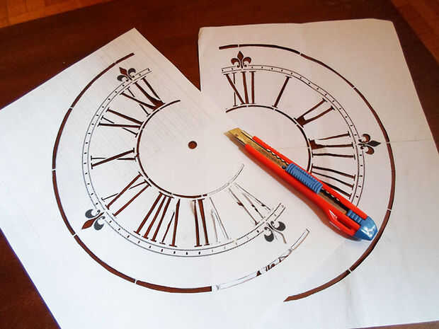Cuando finalmente tienes tu reloj en papel, recortar todas las piezas negras con un cutter o un cuchillo x-acto.