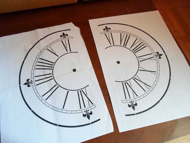 Imprimir su reloj en un papel y hacerlo tan grande como quieras. Sólo pude imprimir en una hoja A4 de papel así que decidí dividir la imagen por la mitad antes de imprimirla, manteniendo la parte central en dos de ellos tienen un punto de referencia para mi plantilla. De esta manera imprimí mi dos partes en dos hojas diferentes de papel.