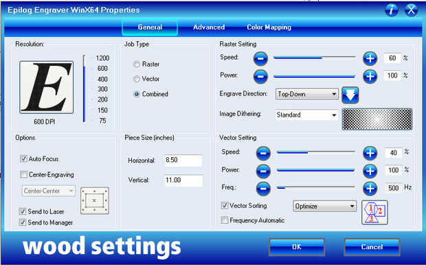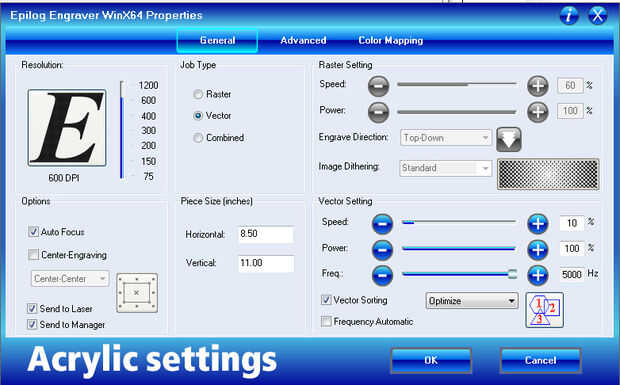 En este paso, cortamos las piezas con una máquina de corte láser. Adjunto con este paso todos los ajustes para los diferentes tipos de materiales que utilizamos.