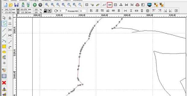 En primer lugar, obtener el esquema de la forma. Luego importar en RDWorks. El botón de mapa de bits de la manija le dan un contorno se puede ajustar como desee.