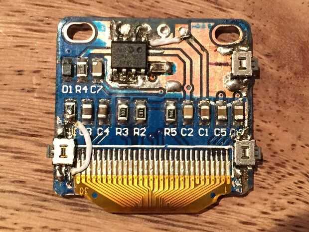 Siguiente fue añadir interruptores diminutos alrededor del exterior de la Junta que se alinee con los botones en la carcasa del reloj. Esto era muy incómodo y en un lugar no era posible debido a los componentes OLED ser demasiado cerca del borde. Esto salió bien duro, como me decidí a hacer mods más al caso y añadir una toma USB mini que podría utilizar la energía y programar el PIC.