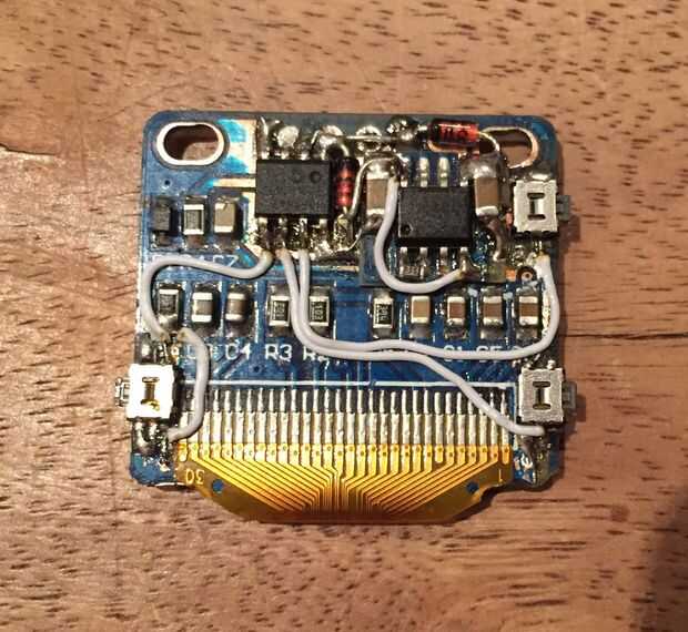 Del módulo de cargador de batería era demasiado grande para el caso por lo que el tamaño necesario para reducirse. El IC cargador podría no de soldar ya que tiene una almohadilla en la parte inferior que no he podido conseguir, por lo que quité los componentes no esenciales como el indicador de LEDs y resistencias, movido los condensadores más cerca al IC y corte la madera a un tamaño mucho más pequeño como pulir el detrás de él para hacerlo más fino. Entonces sólo había pegado en un espacio en el tablero de OLED y había enganchado para arriba con más pequeños alambres. Yo también cableado los interruptores también. Por la salida de la batería a través de un diodo y los 5v de alimentación de la entrada del cargador mediante un diodo en el riel de alimentación PIC y OLED podría cargar la batería mientras alimenta el reloj directamente y que no interfiera con la salida de carga a la batería.