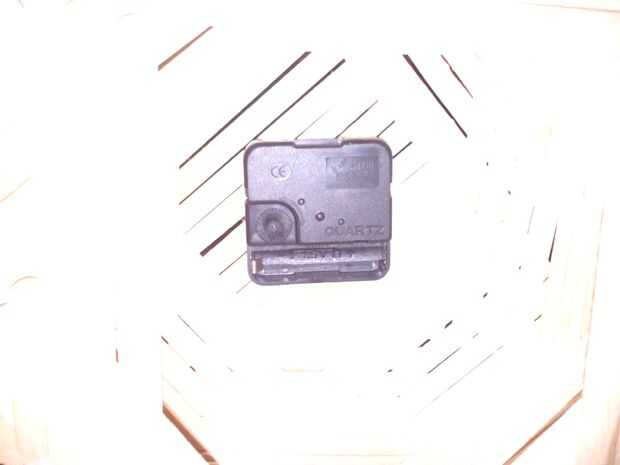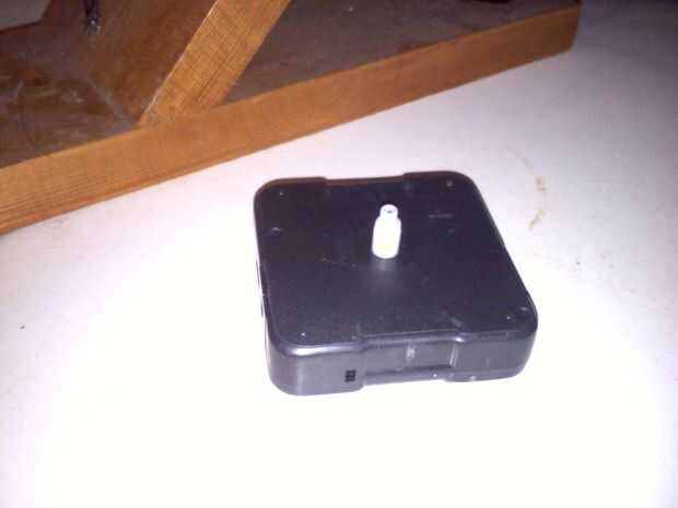 Usar las tripas de un reloj barato he comprado de blanco por $4 usd. Luego pegarlo poniendo un montón de pegamento caliente alrededor del vástago del reloj teniendo cuidado de no sale nada en el tallo. Entonces presiona en su lugar.