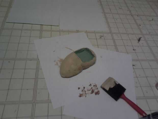 Utiliza una base de acrílico tan y con una esponja en marrón más oscuro para hacer la tierra y los ojos.