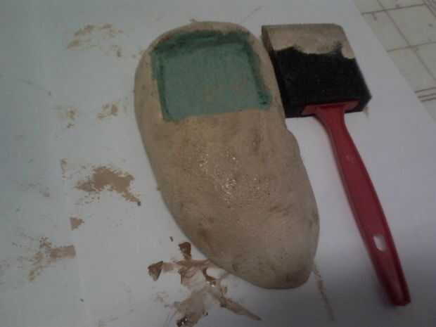 Recogida de dos tonos de marrón, cepillos de esponja y un ansioso por tres años, establecido sobre la patata (que había sido redujo abajo tremendamente para caber en la pantalla final) la pintura.