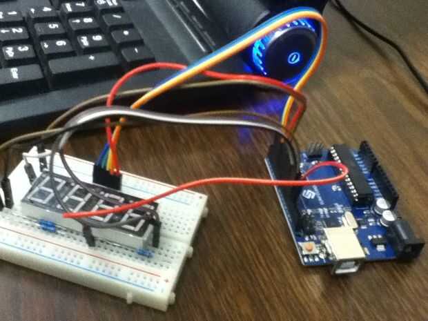 8 LEDs azules en una fila de la pila y lo puso en varilla de latón. Con una bobina de relé antiguo y algunos electrónicos, la varilla de una patada en el momento adecuado y así la construcción empieza a oscilar. Con un Software y un pequeño microcont
