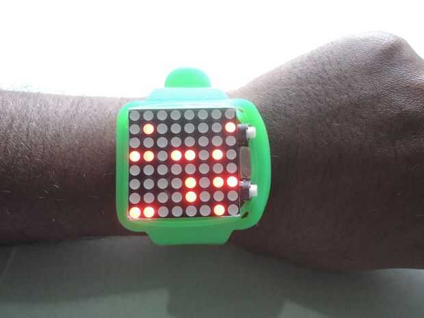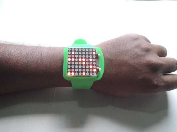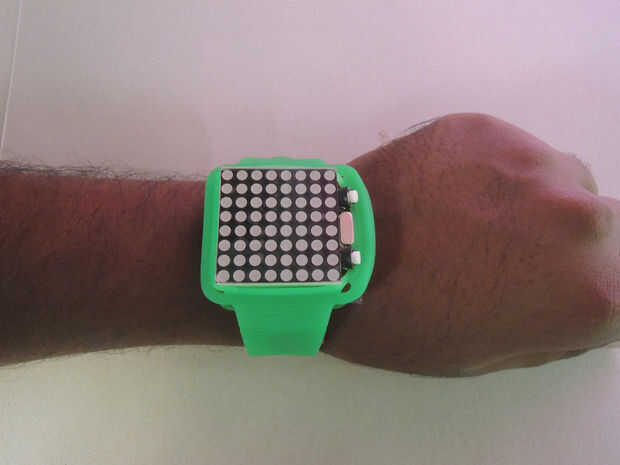 Relojes de pulsera son impresionantes y de lujo accesorios de moda para hombres y mujeres. Los fabricantes siempre gustan usar algo diferente. Mi reloj de pulsera de arduino diy de matriz de puntos es el resultado final después de trabajar un mes. El reloj muestra la hora, fecha y temperatura en formato digital, formato binario BCD y dos de forma diferente. BCD binario está dedicada a fabricante y tecnología ya que no es comprensible para la gente común. Dos botones se utilizan para ajustar y cambiar el modo de visualización.