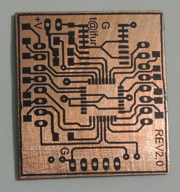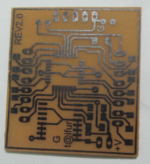 Utiliza a transferencia de Toner método DIY para hacer el PCB. Se adjuntan algunas imágenes. Si quieres hacer tu propio PCB puede seguir este instructables: DIY modificado para requisitos particulares de circuitos (PCB haciendo).
