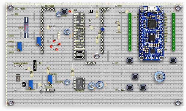 Hay 2 salidas para conducción motores de movimiento analógico de cuarzo esclavo, 1 se utiliza para los segundos analógicos en este reloj y el otro es repuesto que ambas salidas son ajustados por resistencias variables en cada salida. Protección de polaridad inversa es proporcionada por un diodo para que la fuente de alimentación se ajusta para dar 5v en el lado protegido del diodo.