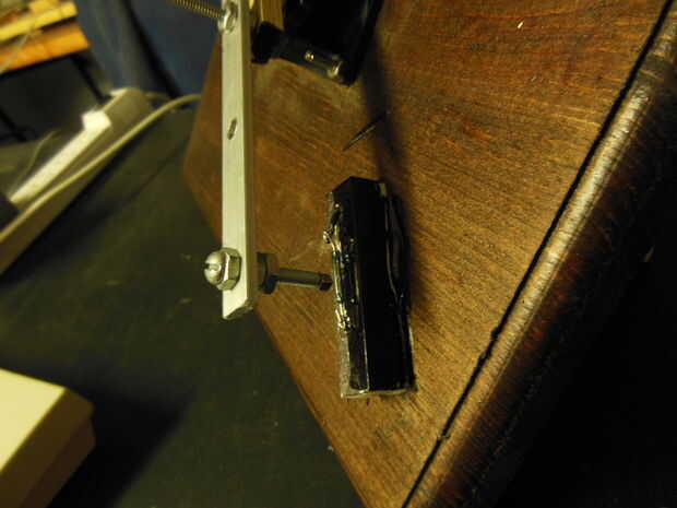 en fin de que el interruptor funcione, tengo un pequeño imán en el extremo del tornillo que se muestra en la foto. Cada vez que pasa el interruptor de láminas que se cerrará los contactos del interruptor reed.