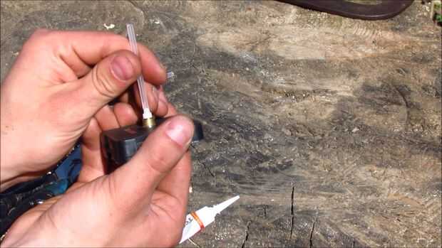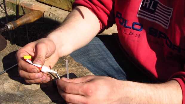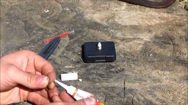 Este es el más complicado. Usted necesitará dos tamaños de tubos de los controladores de puntero de mecanismos de reloj. Son mecanismos estándar chino que se encuentra en la mayoría del reloj. He utilizado un tubo de tinta interior plumas y antena de radio vieja. Corte el trozo de tubo de plumas alrededor de una pulgada de largo. Y un pedazo de antena de un poco más corto. Cuidadosamente super pegamento según grosor de los conductores. La idea es extenderlos para que quepa nuestra rodaja de tronco.