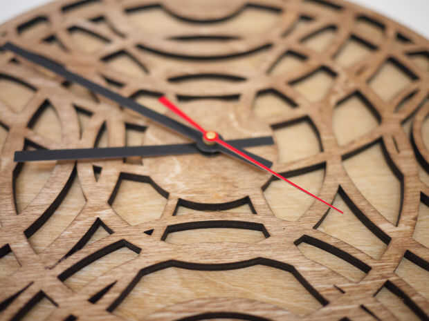 Crear un perpetuo horizonte planificador del laser-corte madera y acrílico, utilizando sólo madera pegamento y cinta adhesiva.Se trata de un balanceo planificador borrable que muestra el día y la fecha para cualquier 4 semanas consecutivas en cualqui