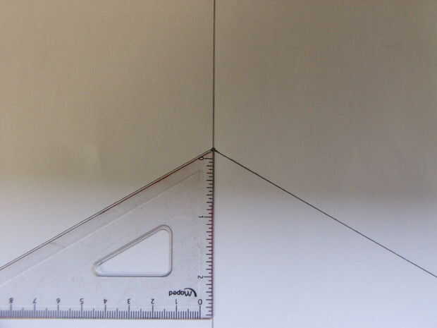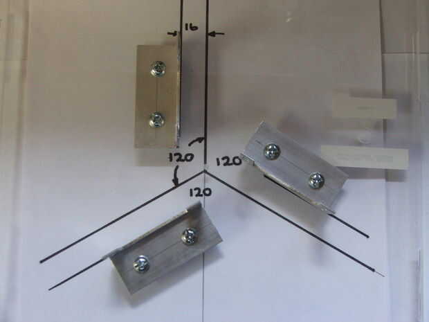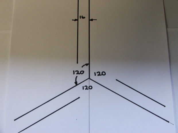 Marcar el punto central en la pared posterior de su caso y dibuje tres ejes hacia afuera con 120 grados entre cada uno.