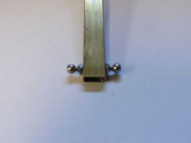 En un extremo he perforado dos agujeros pequeños y atornillados dos rótulas. Entonces llené el final con epoxi para evitar que las articulaciones de bola moverse o caerse hacia fuera.