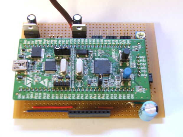 La placa de circuito principal se basa en el STM32 Discovery Junta. No entraré en demasiados detalles como personas son propensas a tener sus propias preferencias en cuanto a que microcontrolador que desean utilizar. El esquema adjunto debe servir como un buen punto de partida.