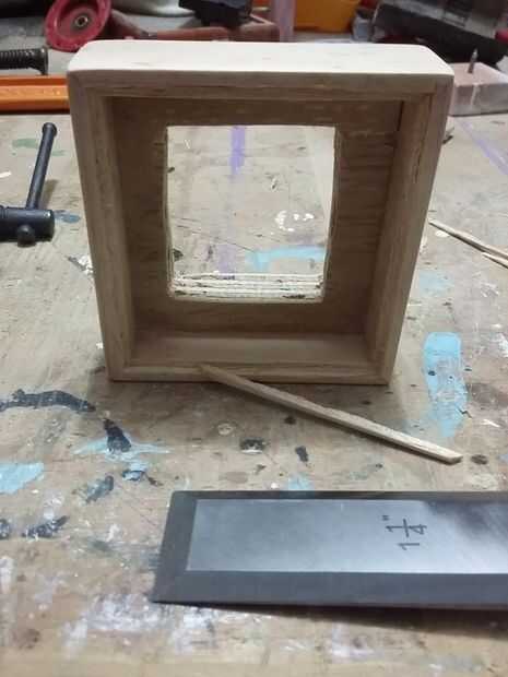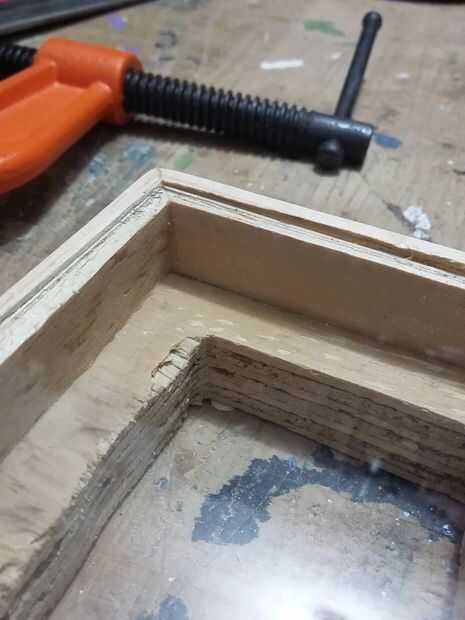 Para instalar el cristal de cara que tuve que hacer un surco en el marco para colocarlo. Yo debo han utilizado un router antes de pegar pero... agh... sea cual sea... Entonces tuve que utilizar un cincel que astually subió muy fácil y bastante bien.