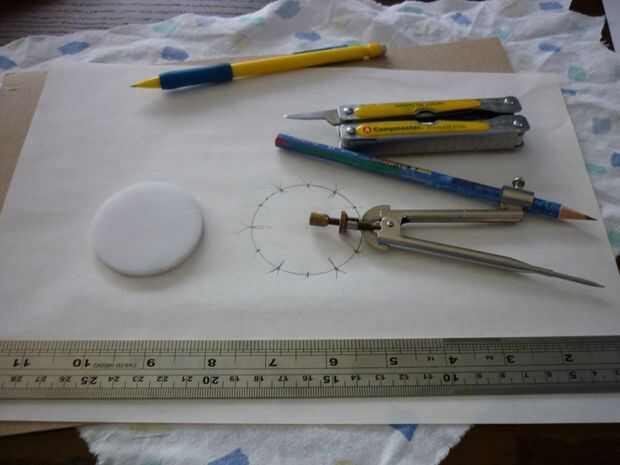 En un pedazo de papel, dibuja un círculo del mismo tamaño que la placa base, esto le ayudará a ajustar la brújula a las distancias de derecha para marcar la placa cuidadosamente.