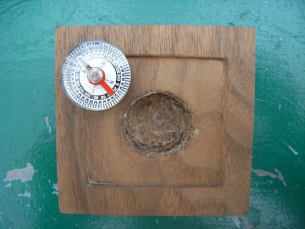 El otro es un más profundo tallado hacia fuera de la zona de la brújula. Esta segunda área debe tener exactamente la radio y la profundidad de la brújula que ha elegido. Usted puede tallar hacia fuera de esta área en cualquier forma que usted prefiera, pero la forma más fácil sería usando un router o una dremel (herramientas pueden trabajar si es necesario a mano). Una vez que el agujero es perforado por la brújula, coloque una pequeña cantidad de pegamento para madera en la parte inferior y coloque la brújula en él con el norte hacia la parte superior de su bloque (para el hemisferio norte... creo que esto se cambie en el hemisferio sur).