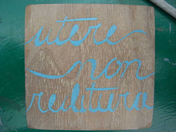 Hice pantallas de cinta de pintor y cortar los números y las palabras de la cinta con una navaja x-acto. Luego utilicé una esponja para aplicar la pintura sobre el patrón donde se pega a la madera donde sólo no hay ninguna cinta.
