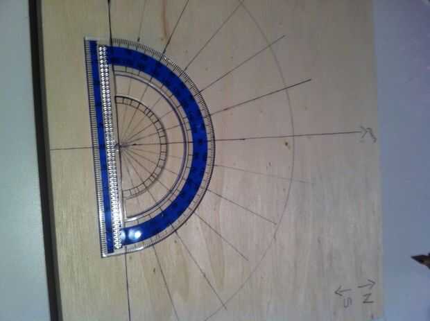 Para marcar el tiempo en el dial, volver a utilizar el transportador, y guarnición de 90 grados con el mediodía, cada hora a cada lado será 15 grados aparte, así que 6:00 y 18:00 será perpendicular al mediodía.