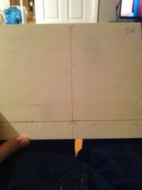 Marcar a lo largo de esta línea donde encuentran los dos picos en el gnomon toque y corte en la madera. Usé mi cuchillo de bolsillo para ello.