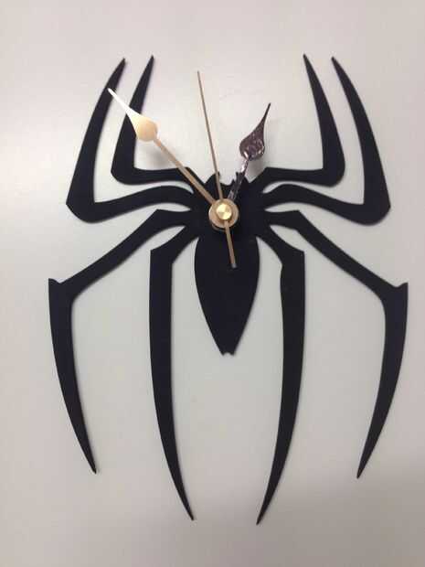 Taladre un agujero de 8mm para montar el mecanismo a través de. Tuve que encontrar un reloj que podría esconderse detrás del cuerpo de la araña, y que no es fácil ya que los mecanismos más baratos son bastante grandes. El resultado se ve bien y ahora vive en mi pared.