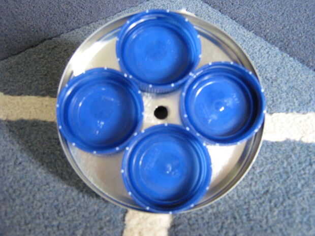Por casualidad las tapas plásticas que eligió/encontré había equipado casi a la perfección dentro de la tapa y no requieren ningún método de adherencia otros eso fricción, pero puedes usar un poco de resina E-poxy.