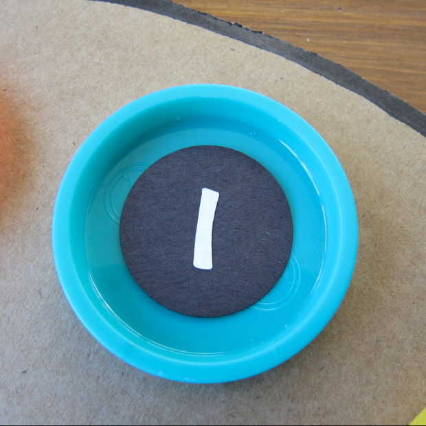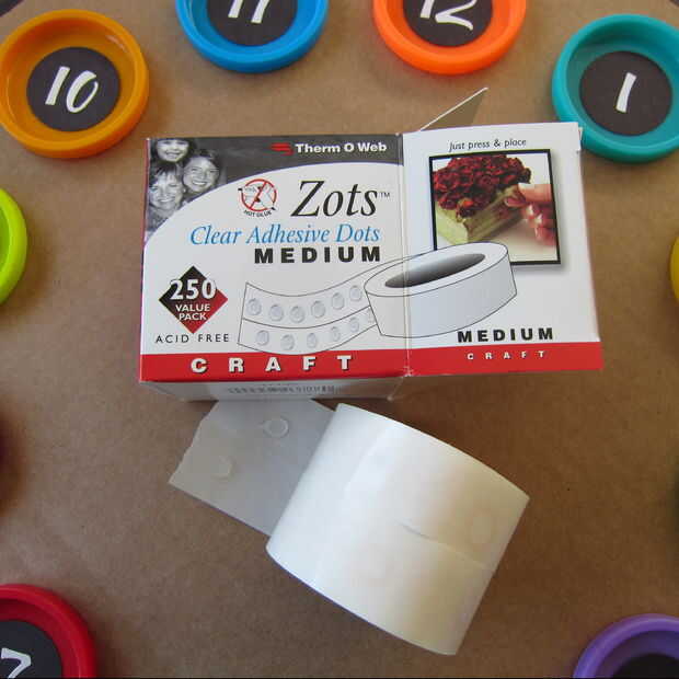 Una vez que los números son puntos adhesivos uso pegado y pegan los círculos numerados en las tapas.