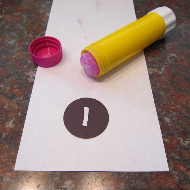 Usando un palillo del pegamento se adhieren los números en el centro de los recortes del círculo.