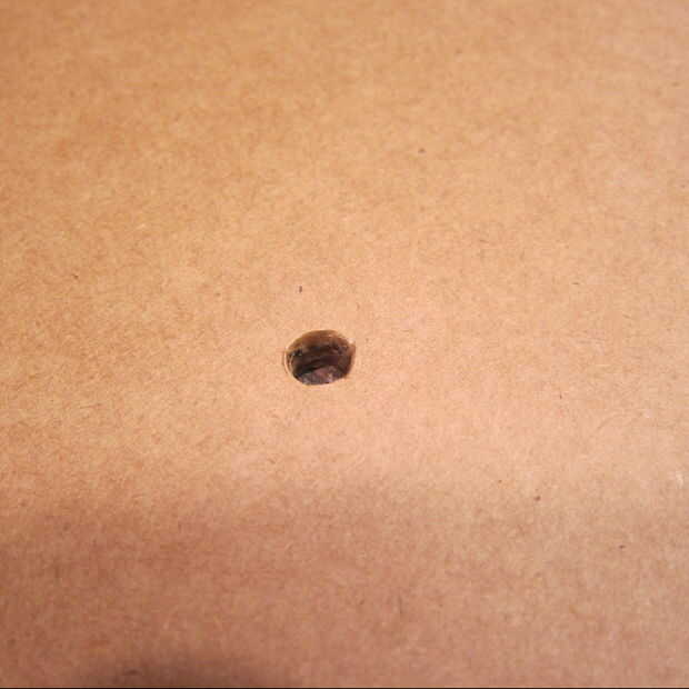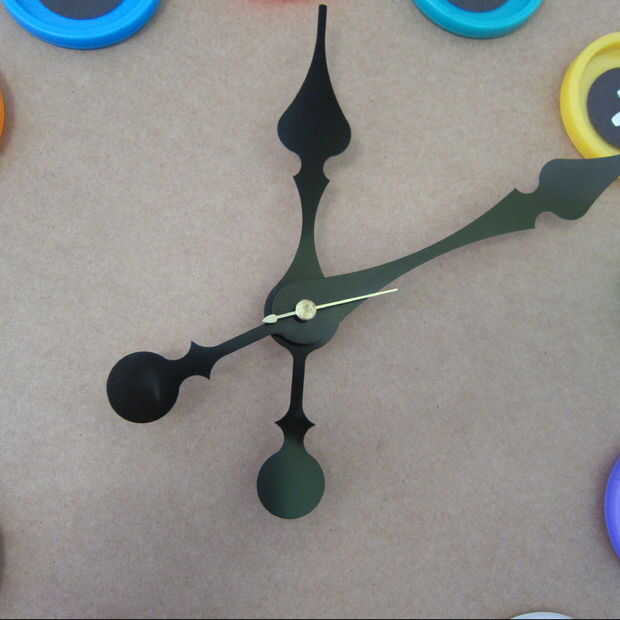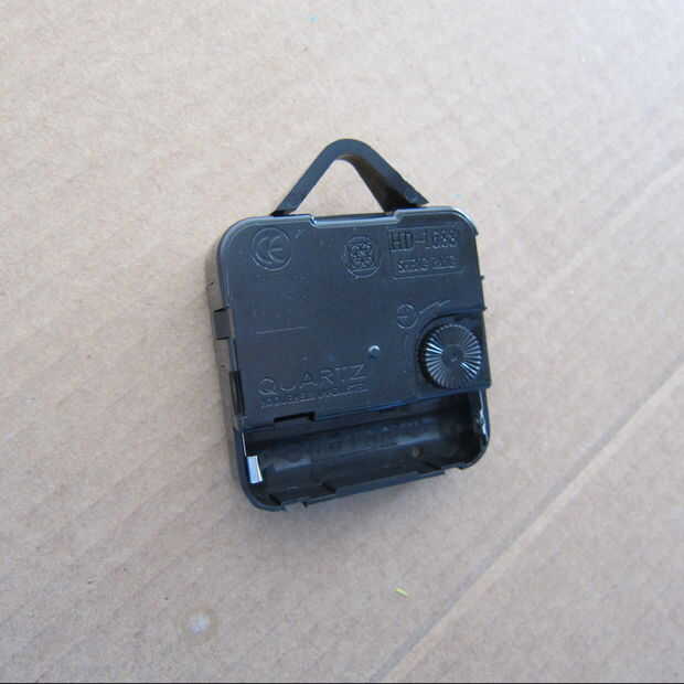 Usé la ciencia muy exacta cuando llegó el momento de hacer un agujero en el centro del reloj. Perforado a través del agujero de perno de empuje con un lápiz! Pasó a ser el mismo tamaño exacto que el funcionamiento del reloj.