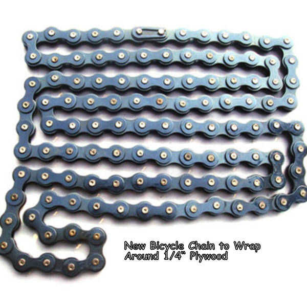 Ahora Monte el anillo de engranaje en el centro de la madera contrachapada para coincidir con el orificio para las obras del reloj. Fíjelo con tornillos pequeños para madera. Toma viejo pedazo de cadena de la bicicleta y quitar varios enlaces, pulsar el enlace de los pernos completamente. Utilice los enlaces externos que parecen una figura 8. Puede utilizar 4 como lo hice o 12 para ir todo el camino alrededor del reloj. Montado mi cuatro en el 12 -3 - 6 - & -9 posiciones en el reloj. Éstos fueron montados con tornillos pequeños para madera. Ahora tiene la cara de reloj completa. Tome la nueva cadena de la bicicleta y envuélvalo alrededor de toda la pieza de madera contrachapada. Desde el centro de la parte inferior y recorrer todo el camino. Debe coincidir en la parte inferior. Sujete la cadena con pequeños tornillos para madera a través de algunos de los enlaces alrededor de todo el camino. Una vez que todo esto es seguro, instalar las obras del reloj a través del agujero en el centro de la parte trasera, coloque las manos, instale la batería AA y listo.
