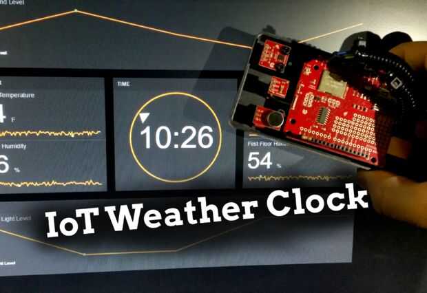 El reloj de tiempo de IoT en este Instructable muestra la hora, fuera de temperatura y humedad, interior de temperatura y humedad, dentro de nivel de luz ambiente y dentro de nivel de sonido.