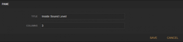 Es una panel terminado. Tendremos que añadir un total de cuatro paneles más: clima, tiempo, dentro de las condiciones y dentro del nivel de luz. Para agregar nuestro panel siguiente, vuelva a hacer clic el botón de Añadir panel . Como antes de un panel en blanco aparecerá en la parte superior de la página. Haga clic y arrastre el panel por debajo el interior sonido nivel panel que acaba de agregar. Haga clic en el icono de llave inglesa y el tiempode la entrada en el campo título . Deje el campo columnas 1.