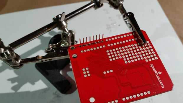 Ni el escudo CC3000 WiFi ni ninguno de los sensores vienen con encabezados conectados. Para alambre de todos los componentes juntos, se soldar encabezados masculinos para todas las conexiones en el escudo y sensores.