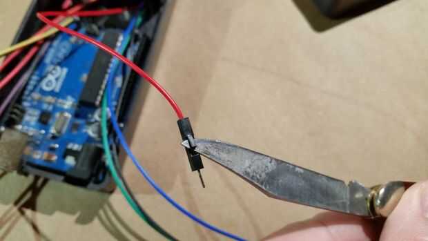 Tenemos un problema menor en nuestra instalación que tenemos que superar. Tanto la temperatura/humedad del sensor y sensor de luz ambiental necesitan alimentación de 3.3V, 5V no. Sin embargo, hay salida de sola 3.3V en el Arduino. Por lo tanto, tendremos que conectar los extremos macho de los cables de puente para estos dos sensores para que ambos puedan enchufar el Arduino salida de 3.3V.