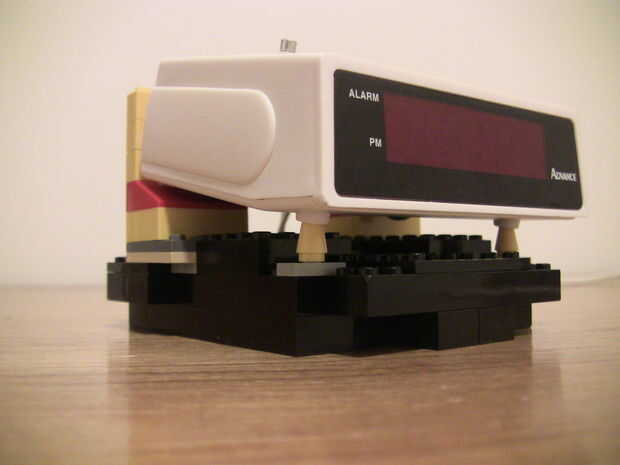Es importante que construir su stand para que el reloj no se desliza. Además, asegúrese de que la esfera del reloj esté al ras con la base de Lego abajo. El resultado final debe salir el punto medio de su reloj en el punto medio de la caja.