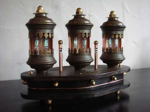 Un par de meses hace el Sr. Longwinters enviarme algunas bombillas de plasma (neón) ingenio bobinas E-27 europeo.Señor Junophor me ofreció una paz grande de madera de caoba. Así que tuve la materia prima para un reloj binario steampunked.El reloj est