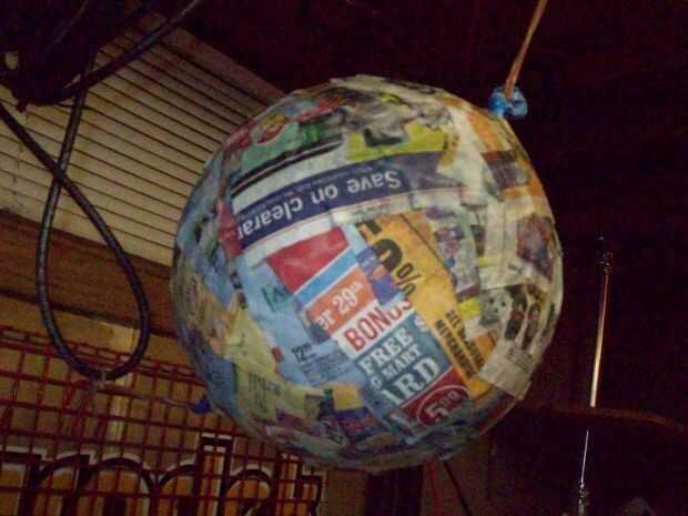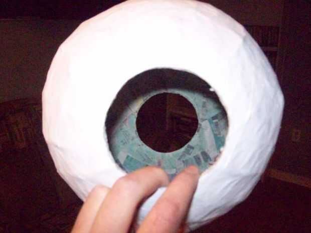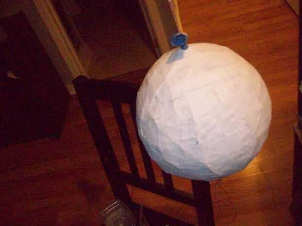 Hacer varias capas de papel maché tan uniformemente como sea posible, no quieren una esfera con grumos. Cada capa puede tomar secado durante la noche para estar completamente seco. Hice 5 capas por lo que sería lo suficientemente gruesa y fácil de cortar. (fig 5)