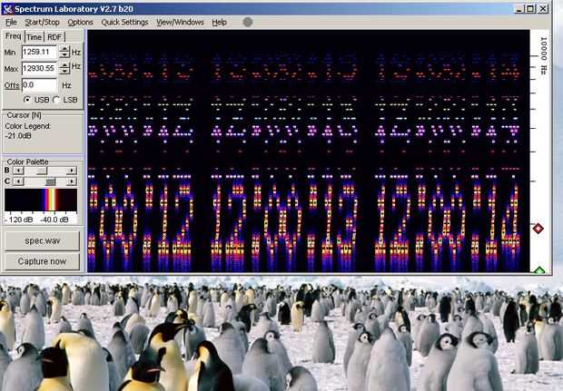 El patrón de puntos de vista por encima de la línea de cifras es debido a los armónicos de los tonos: el microcontrolador genera tonos cambiando una línea de puerto a la alimentación o el suelo, y la onda rectangular resultante tiene muchos armónicos. Ya que este se alimenta directamente a la tarjeta de sonido, la pantalla mostrará todos estos armónicos junto con la frecuencia fundamental deseada.