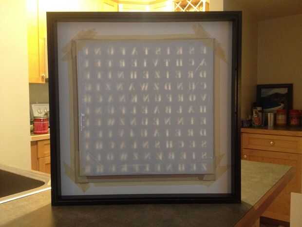 Coloqué la colchoneta de la tienda corte en el marco, recortar la parte sobrante y luego aprovechado por la Junta de Letras de corte por láser. He añadido otra capa de plástico para ayudar a difundir las luces de LED super brillantes (otra vez, trate de obtener 5V LED en lugar de 12V).