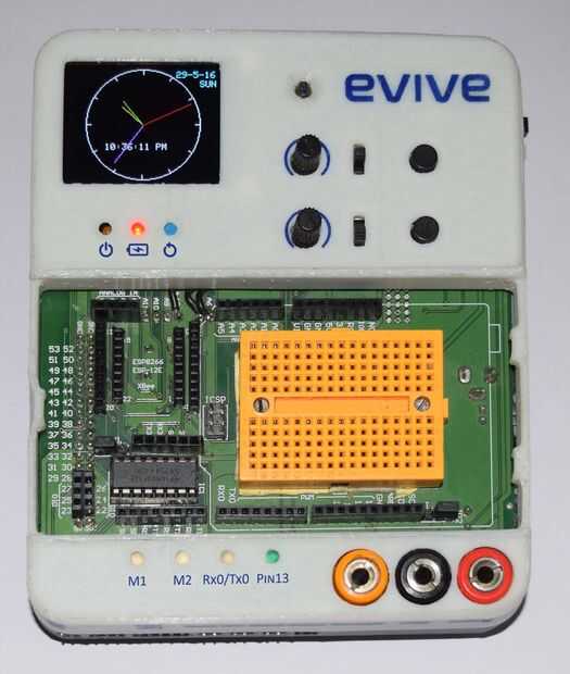 Queremos hacer un reloj de alarma analógico y digital combinado. Reloj de tiempo real es esencial para el reloj mantener el tiempo, incluso si está apagada. Pero comúnmente disponibles tableros de microcontrolador como Arduino o frambuesa Pi no tienen un reloj en tiempo real. Sin embargo en evive, existe un integrado RTC (reloj en tiempo Real). evive también tiene pantalla TFT de 1.8" y algunos interruptores y potenciómetros, por lo que no requiere ningún componentes electrónicos adicionales. evive utiliza PCF8563 de IC para la función de reloj en tiempo real.